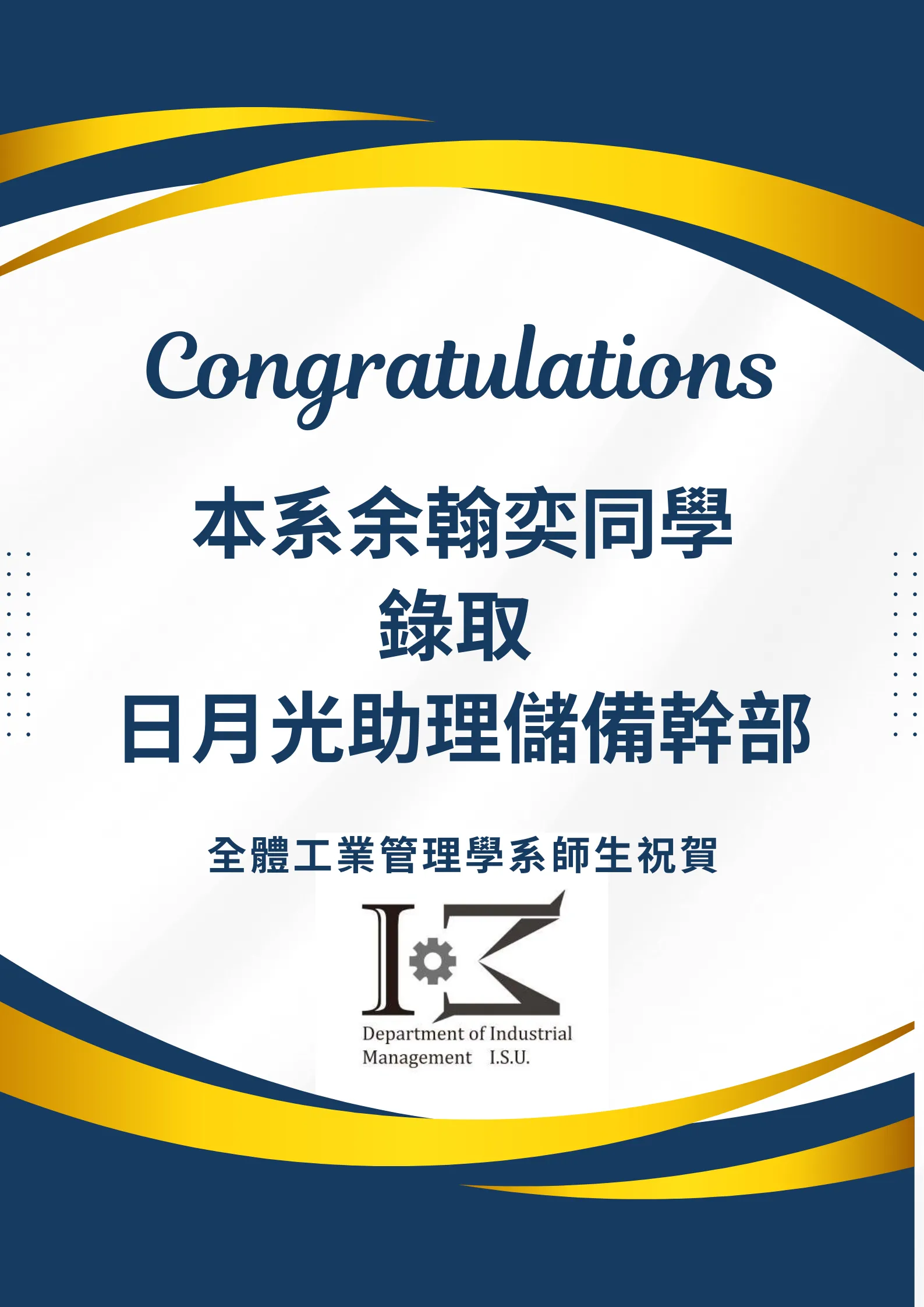 賀!本系大四同學錄取 日月光儲備助理幹部